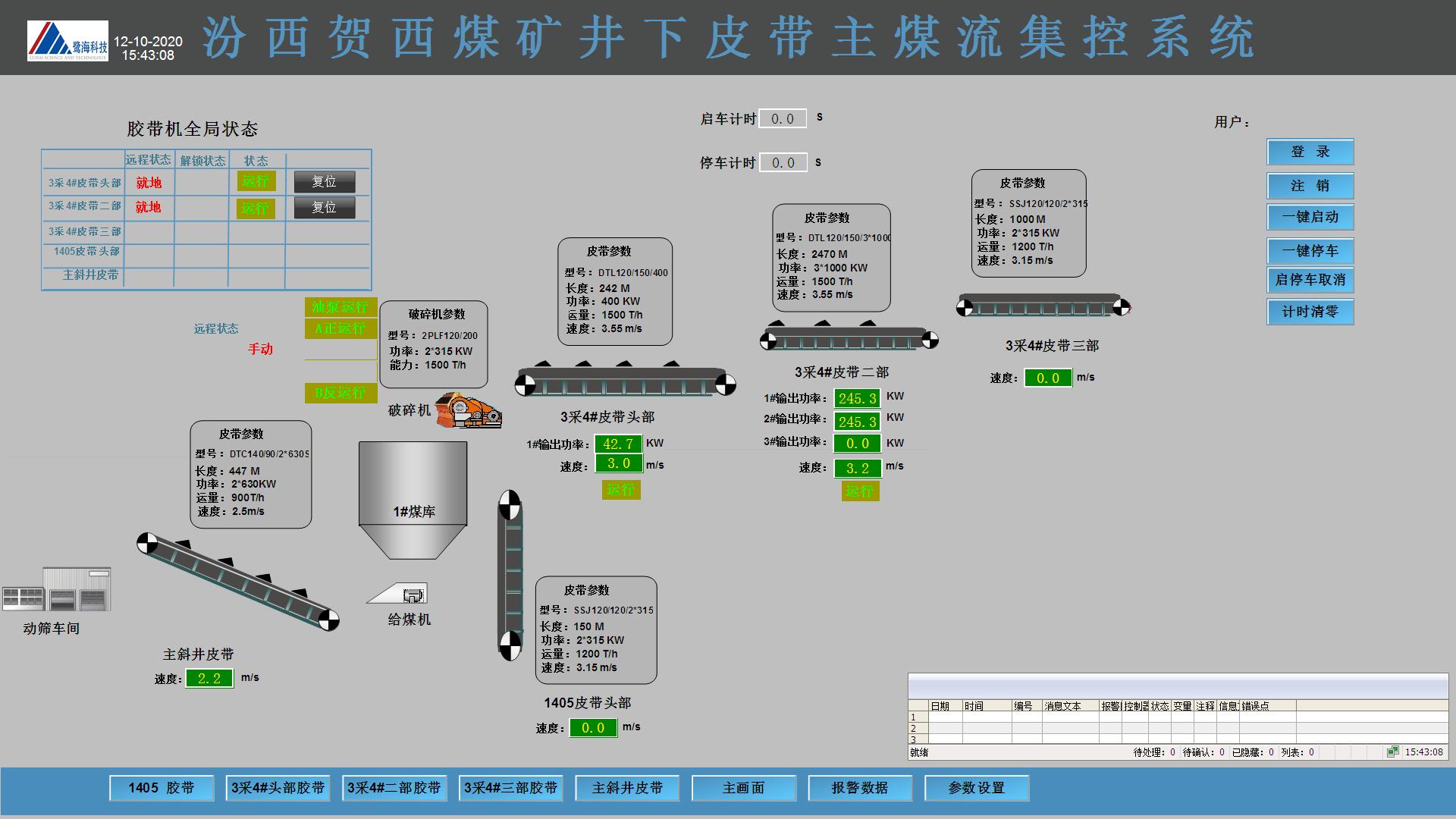 主運皮帶(主斜井皮帶、井下大巷皮帶等)具備遠程、就地控制功能